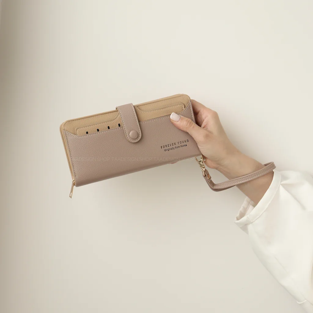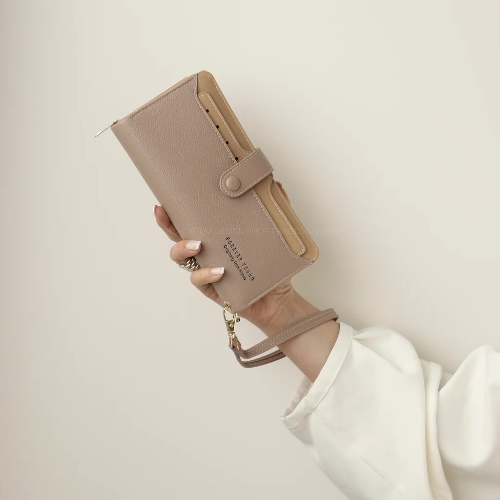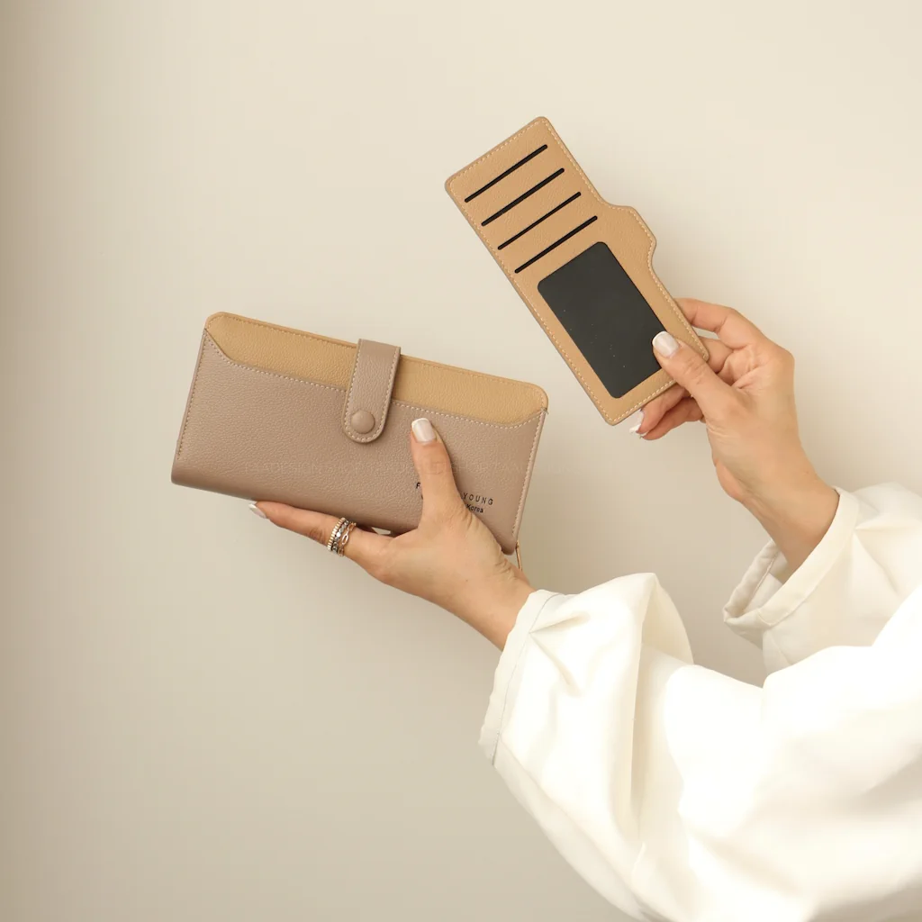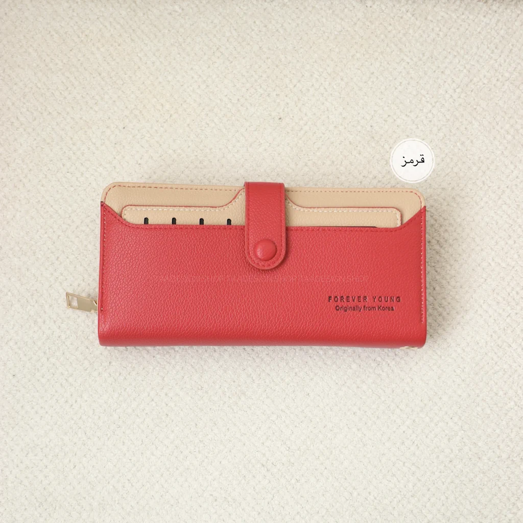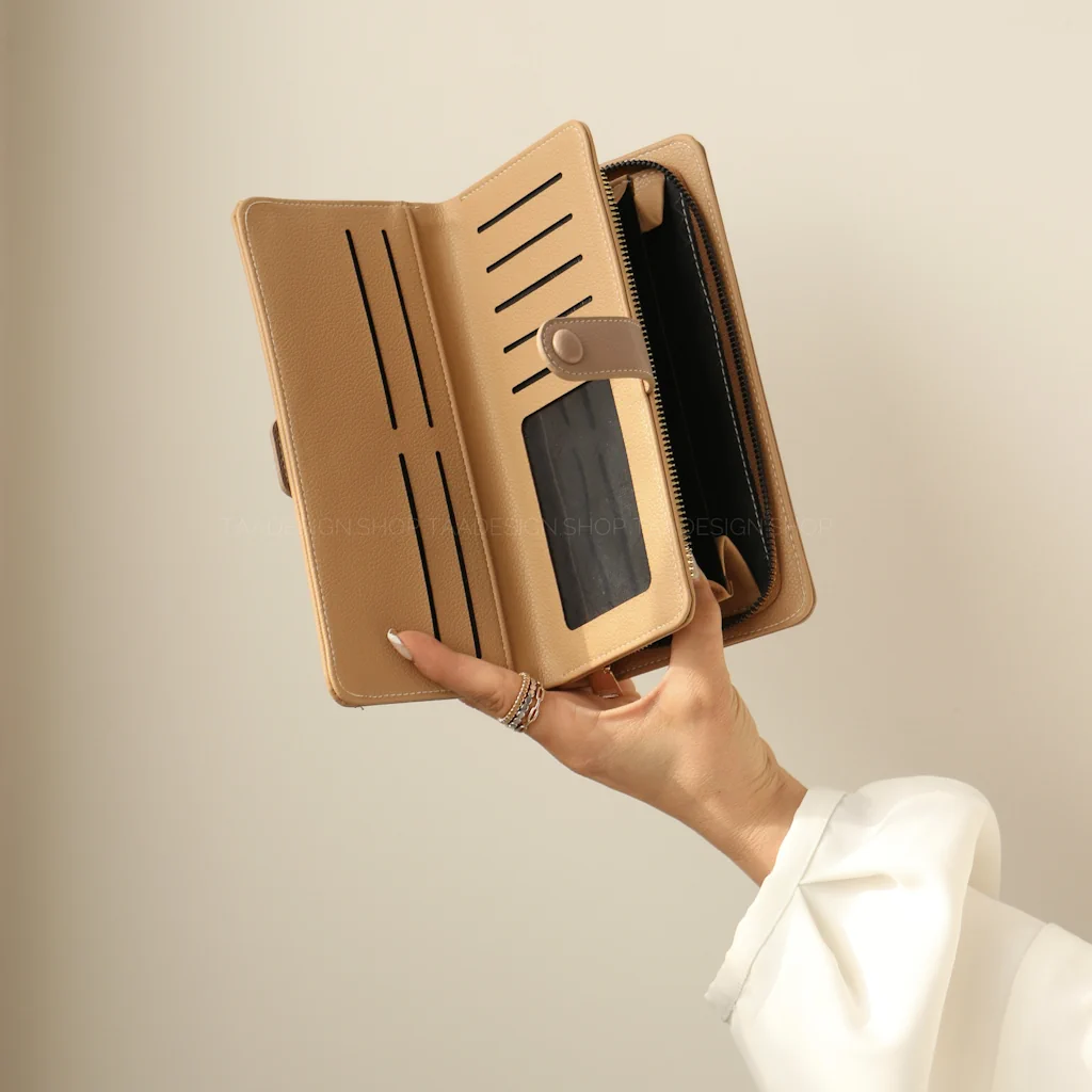 این کیف پول طوری طراحی شده است که به راحتی پول، کارت ها و گوشی شما را پوشش دهد و با بند مچی به راحتی قابل حمل باشد.