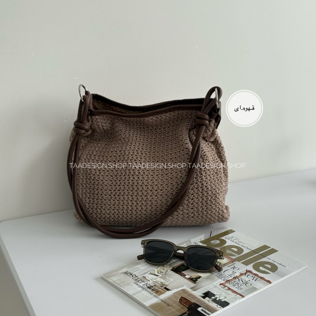 کیف سوزان رافیا در رنگ های مشکی، کرم روشن و نسکافهای موجود است.