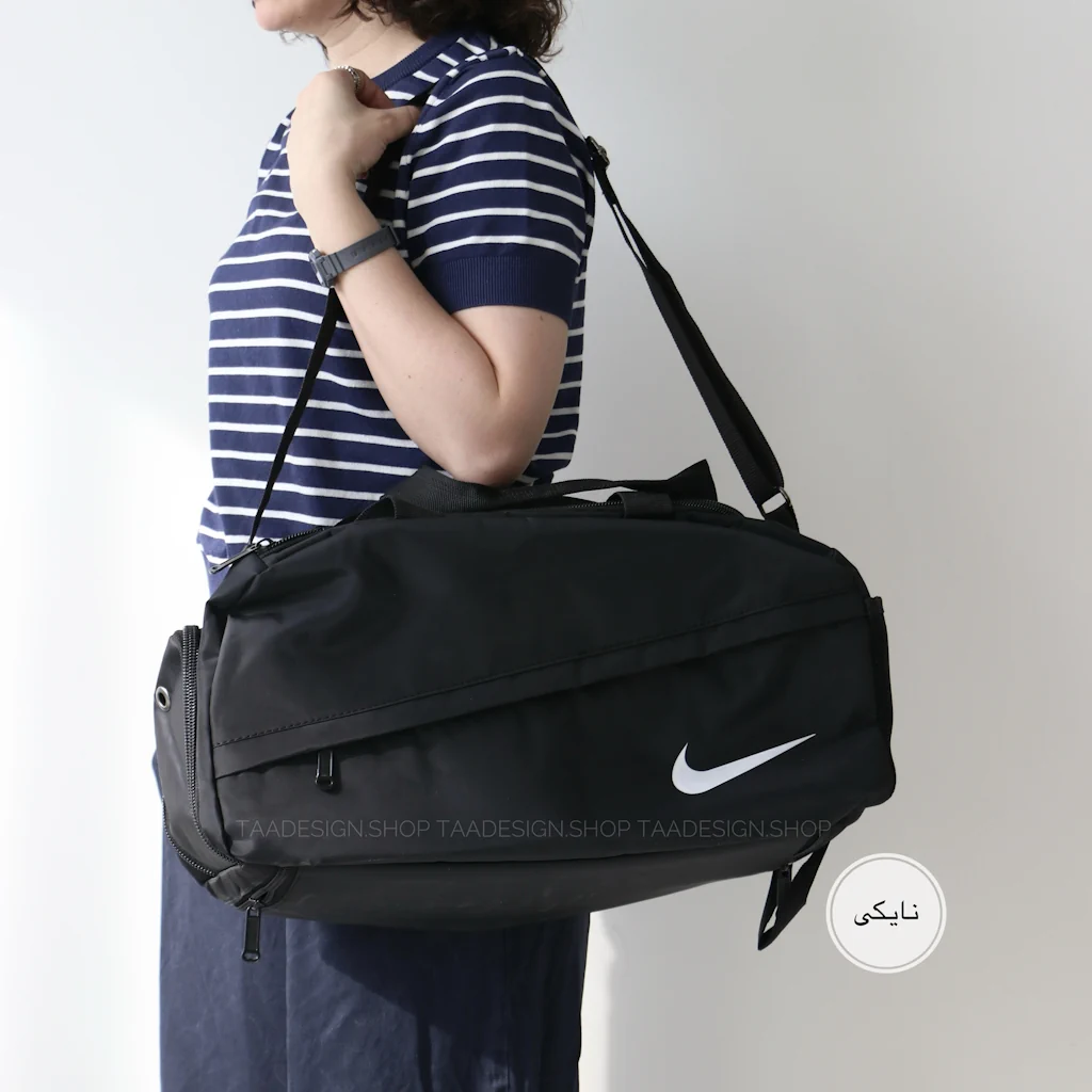 - فضای داخل کیف: کیف دارای یک فضای کلی به همراه زیپ و جلوی کیف دارای یک جیب بهمراه زیپ و دارای جای کتونی،این ساک قابلیت کوله پشتی شدن هم دارد.