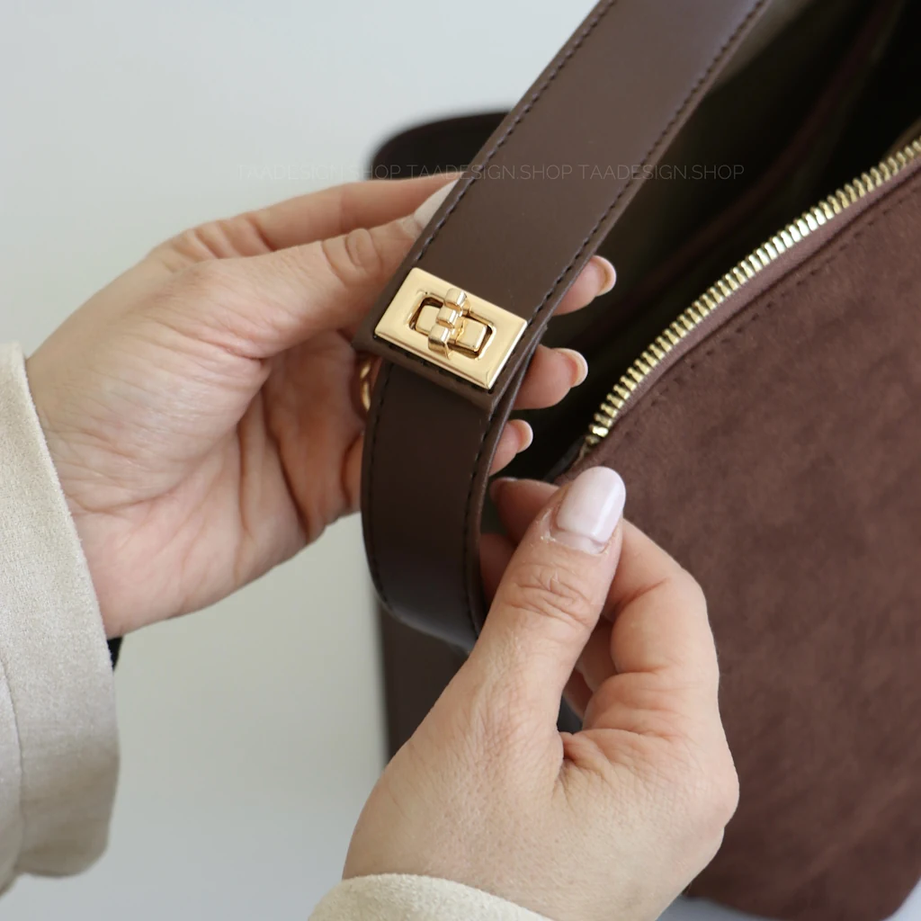 کیف انیگما در رنگ های قهوه ای و قهوه ای سوخته موجود است.
