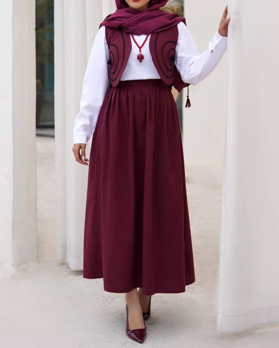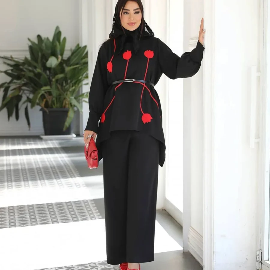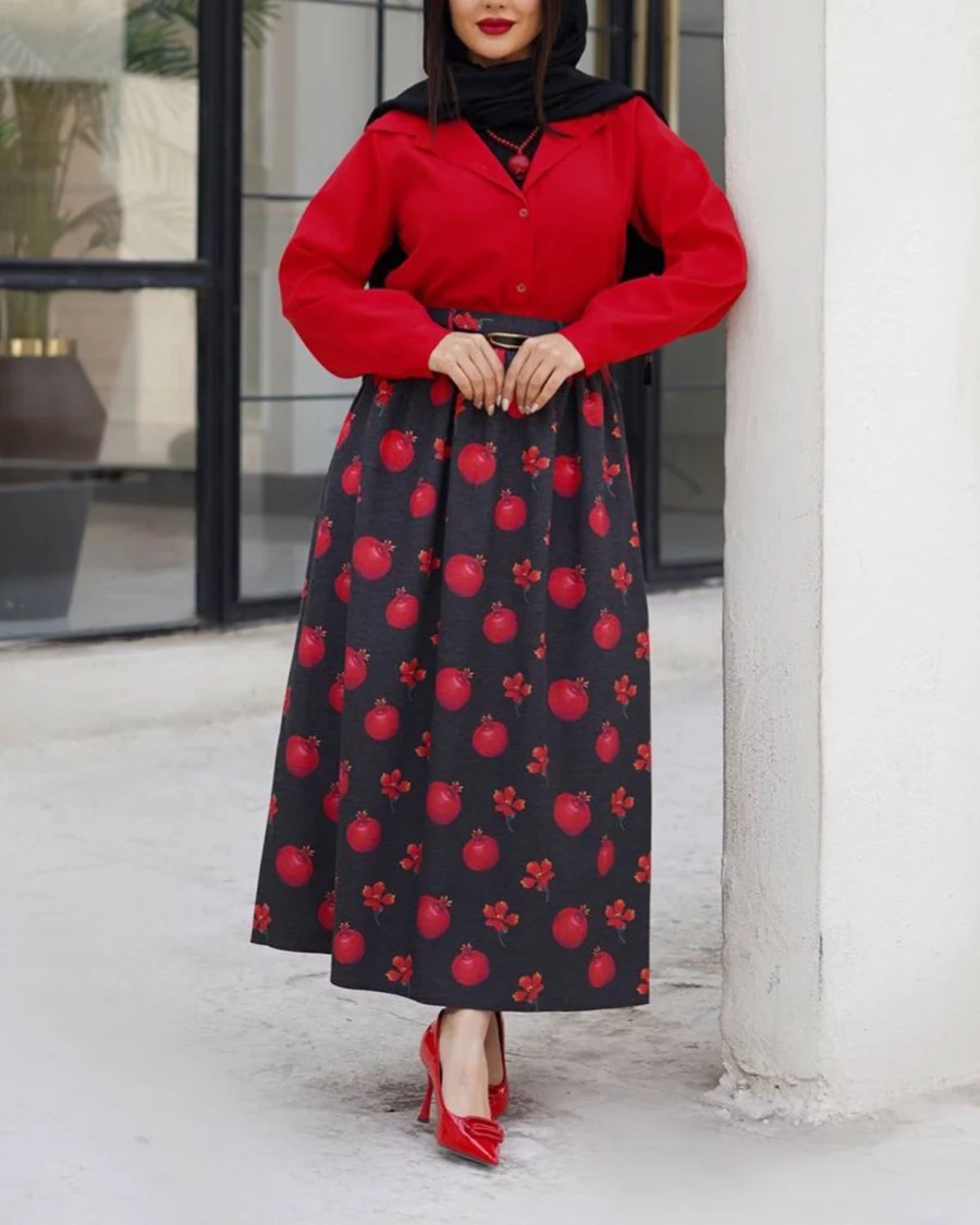 بلوز و دامن استایلی شیک و راحت برای مهمانی و مجالس مختلف است. خصوصا بلوز قرمز و دامن مشکی بسیار جذاب و شیک است اگر با کفش پاشنه بلند، شال و روسری ست شود.
