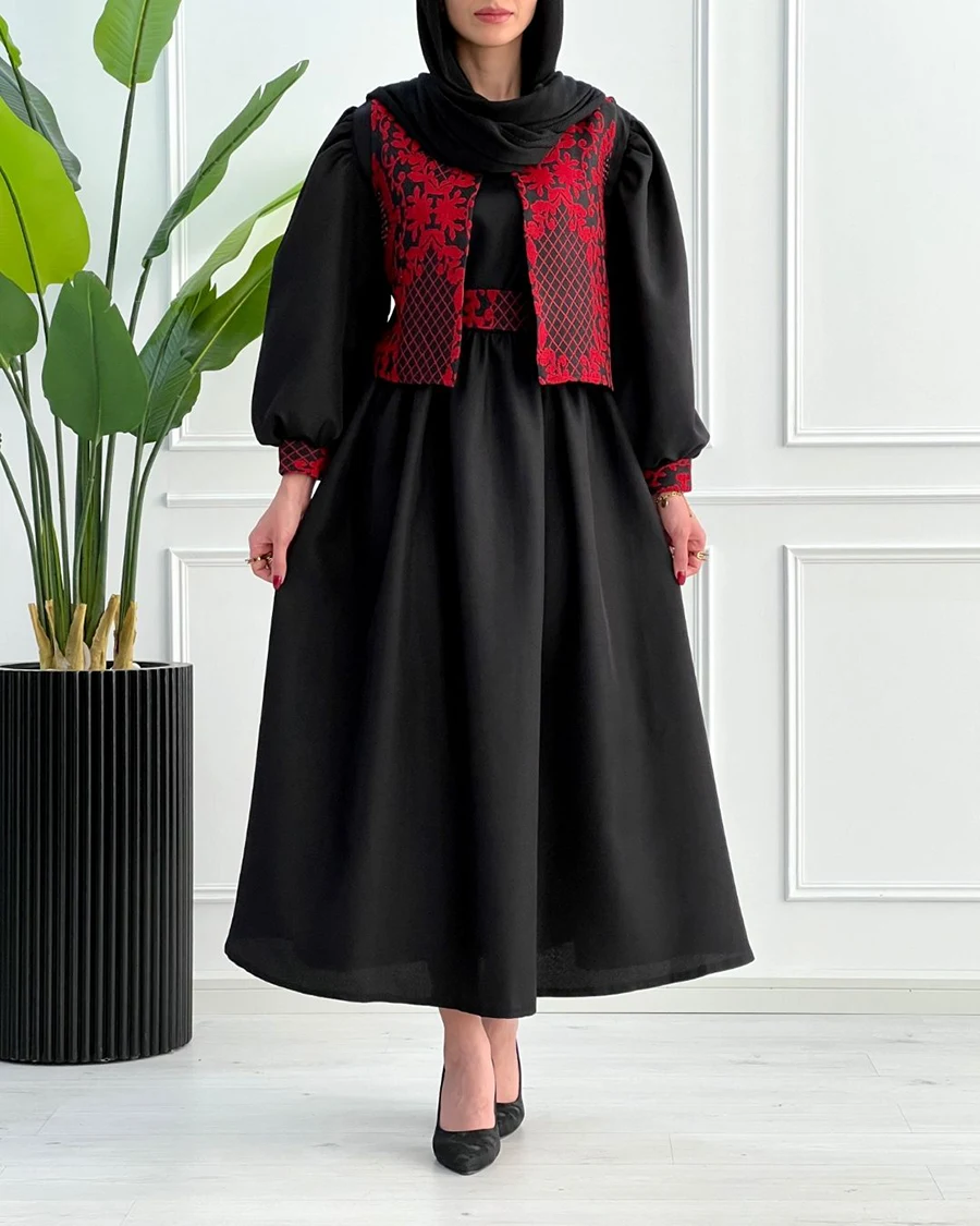 پیراهن مجلسی از جنس مخمل، ساتن، بافت یا کرپ مازارتی به رنگ قرمز، سبز، مشکی و سفید